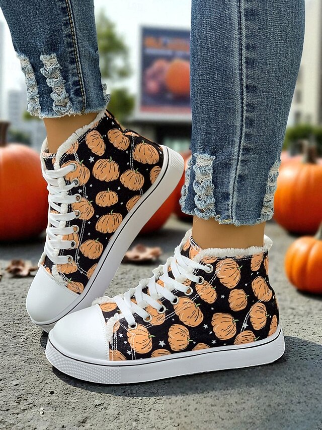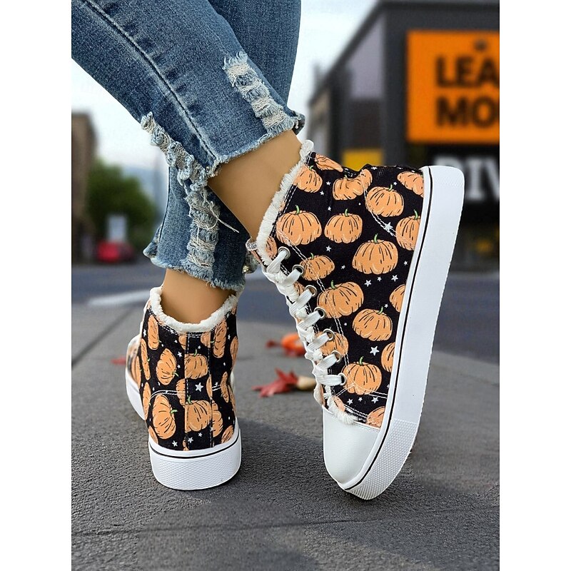 $26.99 - Women's Halloween Pumpkin High Top Sneakers – Casual Canvas Lace-Up Shoes with Festive Print for Autumn, Costume Party and Everyday Wear 2025. Shop for cheap Shoes For Women online? Buy at lightinthebox.com on sale today!