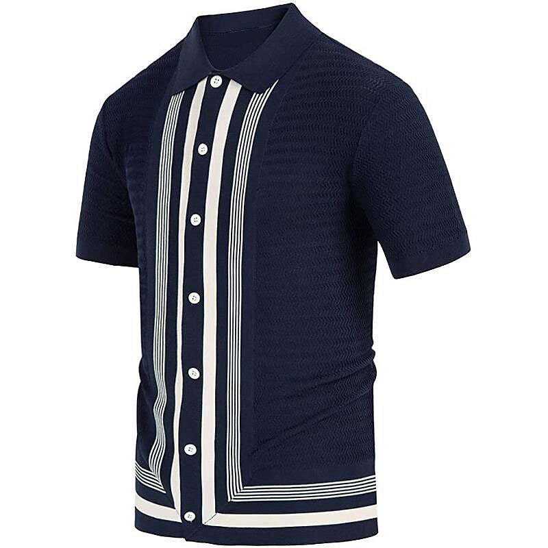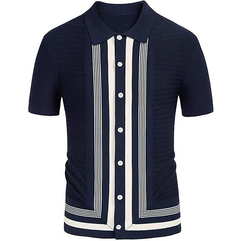 More information about Men's Knit Polo Sweater Polo Shirt Street Casual Button Classic Short Sleeve Fashion Casual Graphic Striped Button Front Summer Spring Fall Regular Fit Navy Blue Green Khaki Knit Polo Sweater