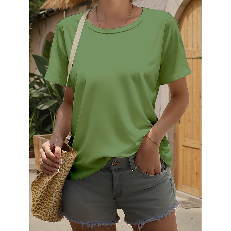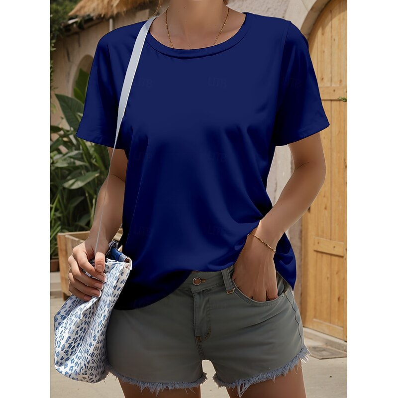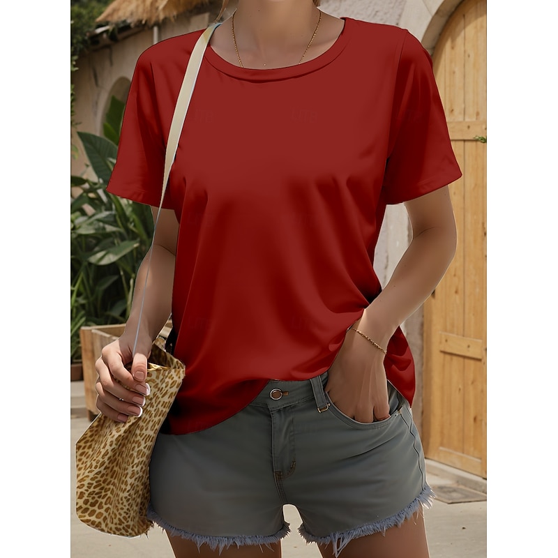 More information about Women's T Shirt Solid Color Plain Stylish Casual Short Sleeve Crew Neck Regular Tops Daily Print Black White Wine Navy Blue Sky Blue Summer Spring