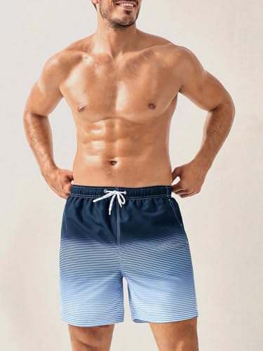 HOT ! SweatyRocks Men's Striped Swim Trunks Drawstring Waist Summer Beach Shorts with Pockets