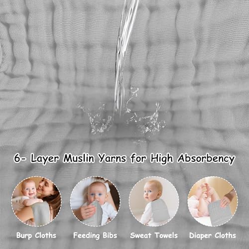 • EXCELLENT ABSORBENCY - With 6-Layer thickening design fabric, these face cloths provide premium softness, breathability and durability. Soft material features its super liquid-absorbing and quick-drying nature, giving baby's skin perfect care.