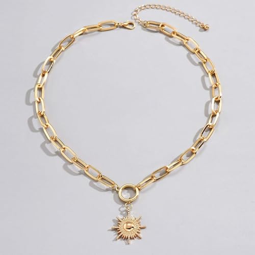 HOT ! Gold Necklace for Women 18K Gold Plated Sun Paperclip Link Chain Necklaces Sunflower pendant necklaces Chunky Gold Sunshine Celestial Necklaces Minimalist Jewelry