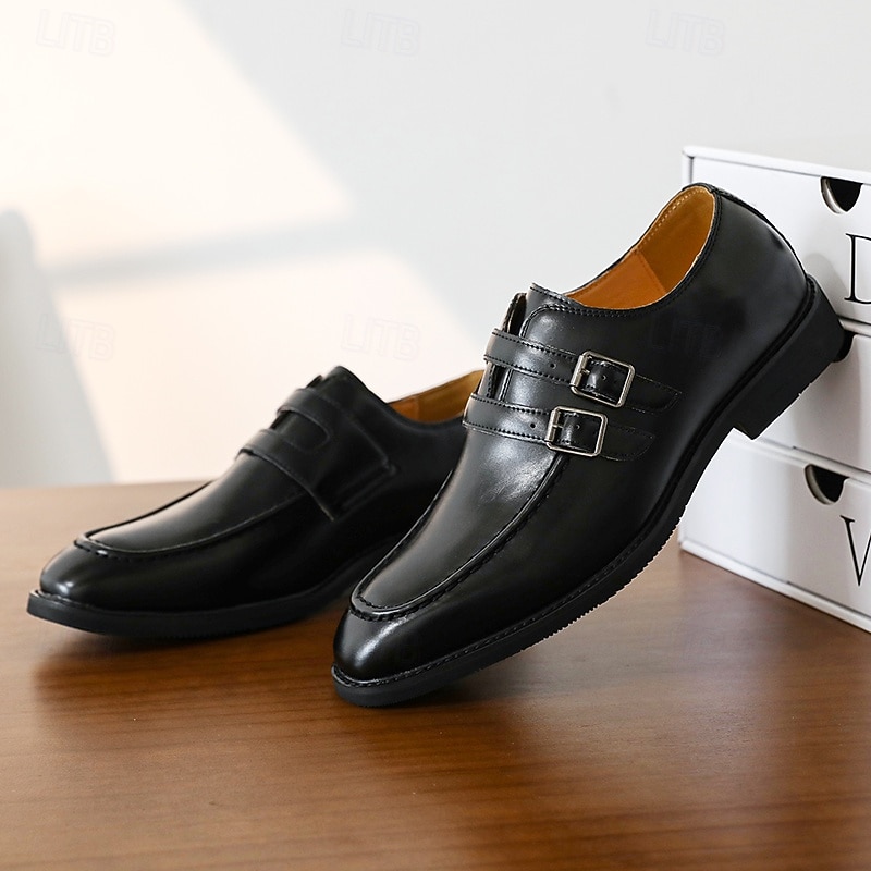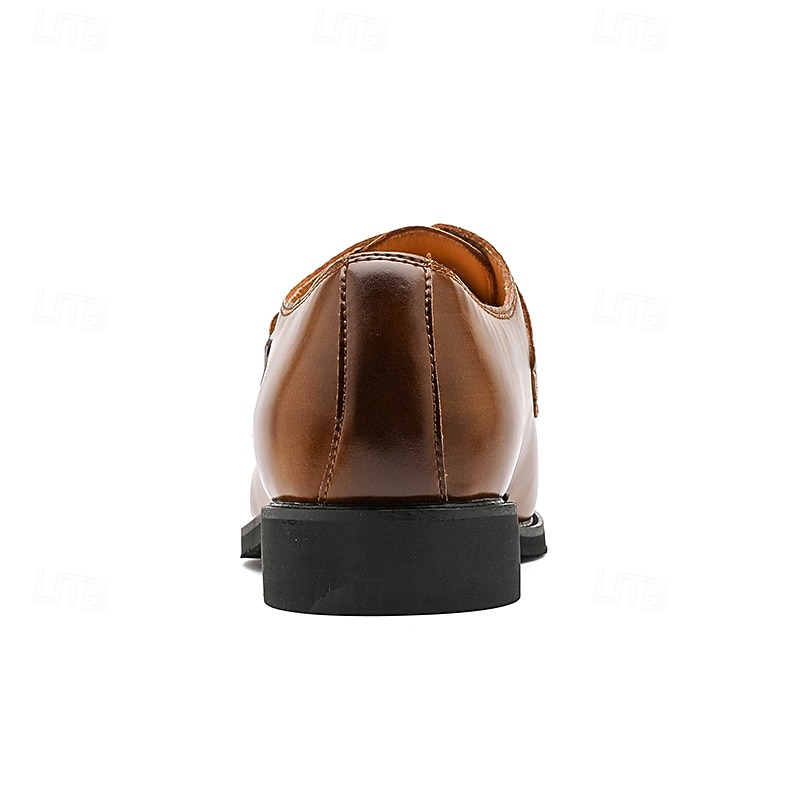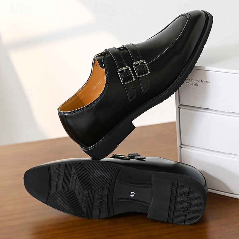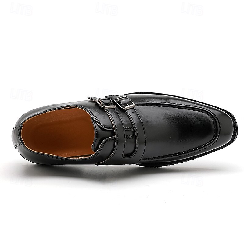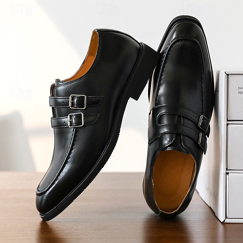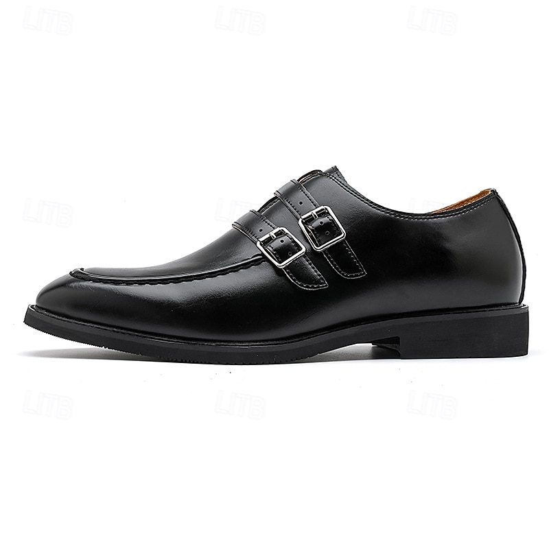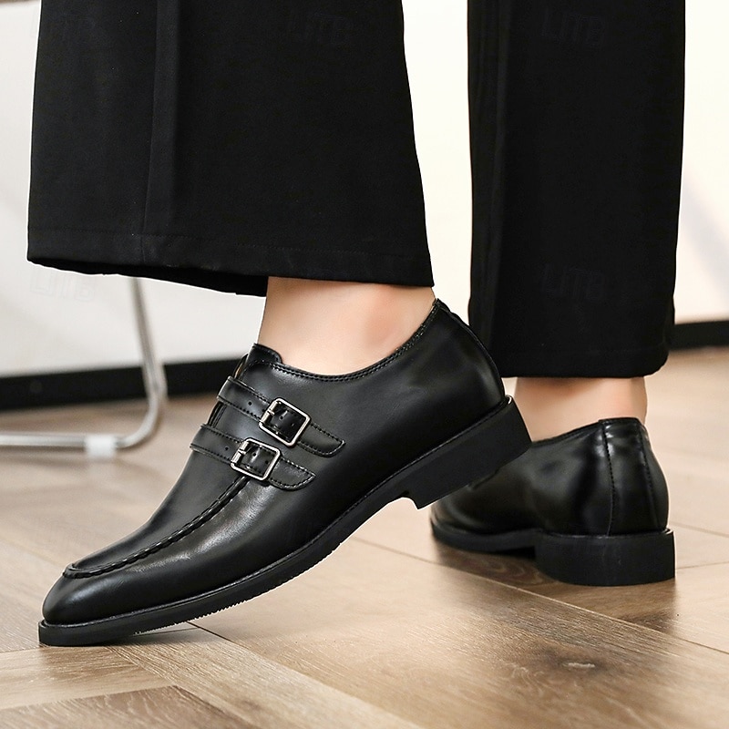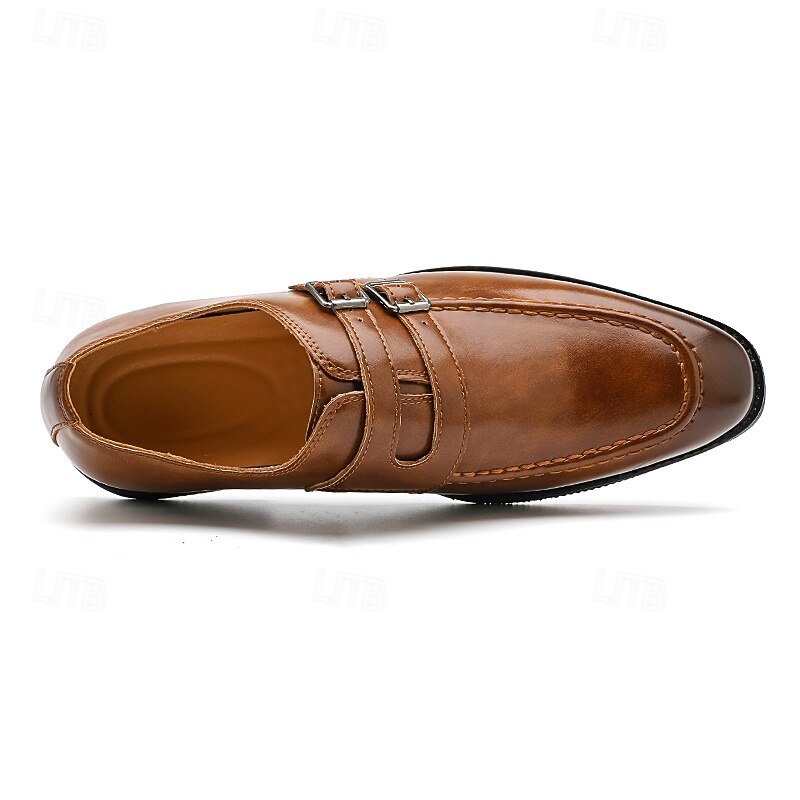 HOT ! Men's Brown Double Monk Strap Shoes – Sleek Faux Leather Shoes for Business and Semi-Formal Wear