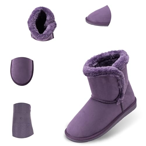 • CLASSIC STYLE & VERSATILE DESIGN: These classic short winter boots offer a stylish and cozy look that effortlessly complements any fall or winter outfit. The soft microsuede upper, available in various colors, and the visible faux fur lining on the cuff and side seam add a cute and fashionable touch.