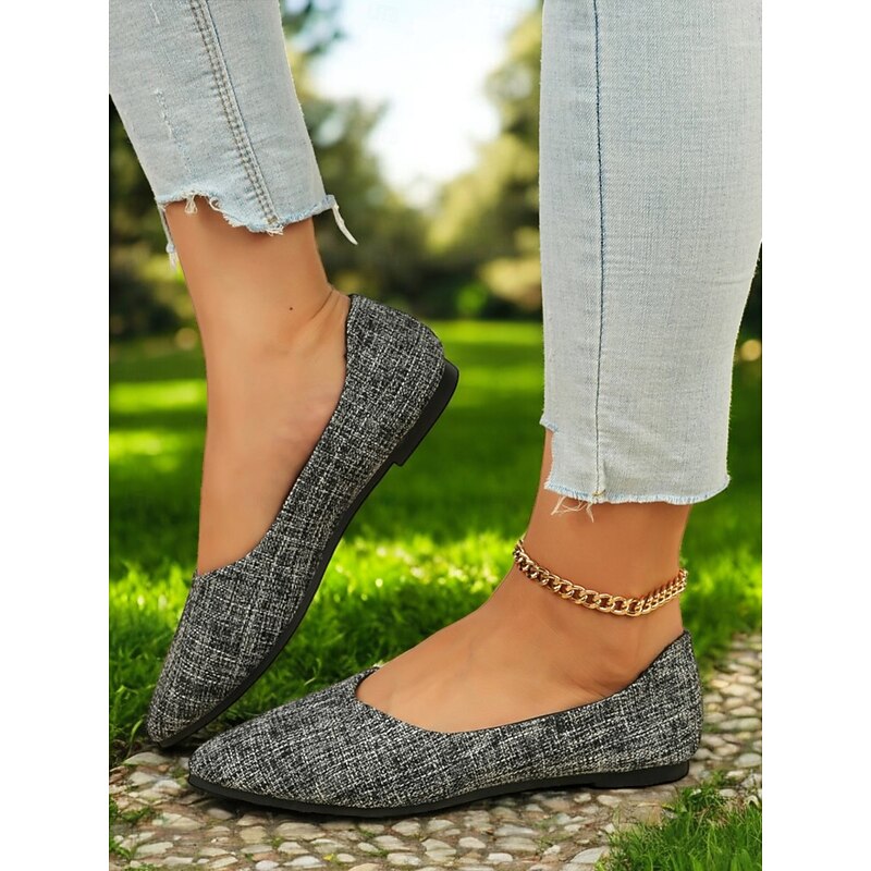 HOT ! Women's Pointed Toe Linen Flats | Casual Shoes for Office, Shopping & Everyday Outfits