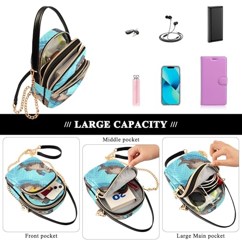 More information about Cute Cartoon Otters Blue Shoulder Handbags for Women Cartoon Chain Strap Cell Phone Handbag Quilted Ladies Crossbody Satchel Bag