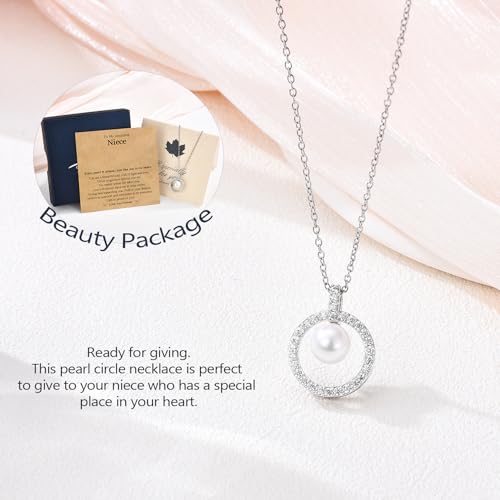 EPIRORA Gifts for Daughter Niece Sister Granddaughter, Silver Pearl Pendant Ciecle Necklace Jewellery Presents for Women Girls on Birthday Christmas Mother's Day Valentines Day 4
