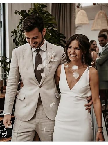 Mens Linen Suit Slim Fit Linen Suit for Men Groom Beach Wedding One Button Mens Suits Jacket Pant 2 Piece Set 4