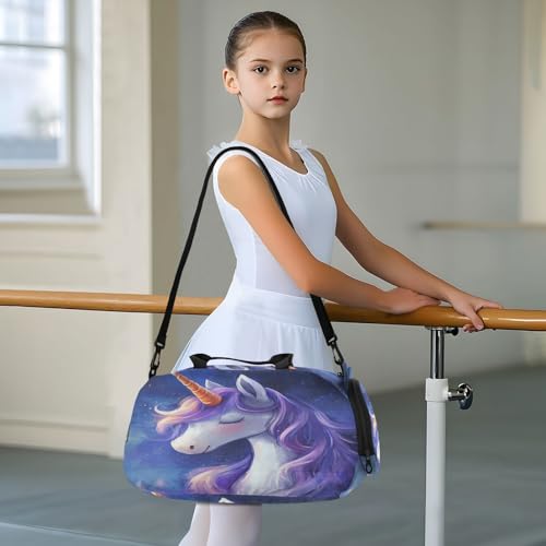 Purple Unicorns Kids Travel Duffel Bag for Boys Girls Overnight Weekend Tote Bag with Shoes Compartment for Beach Swim Trip 5