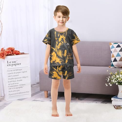 ALAZA Yellow Puppy Dog Black Pajamas Set Short Sleeve Cotton Sleepwear Summer Pjs 2 Piece 5-14Y 6