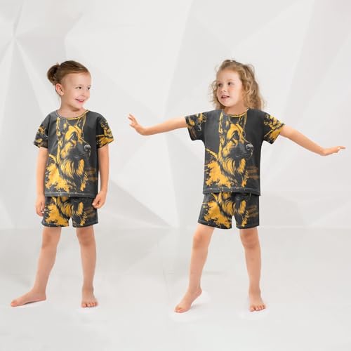 ALAZA Yellow Puppy Dog Black Pajamas Set Short Sleeve Cotton Sleepwear Summer Pjs 2 Piece 5-14Y 5