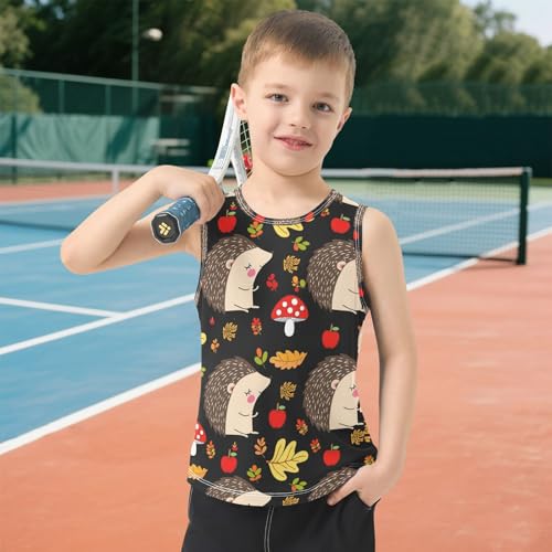 J JOYSAY Hedgehog Mushroom Leaves Black Boys Tank Top Sleeveless Muscle Shirts Quick Dry Kids T-Shirts 3-15T 3
