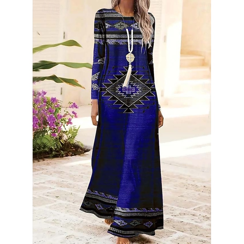 More information about Women's Maxi Dress Shift Dress A Line Dress Party Casual Boho Daily Date Going out Regular Fit Tie Dye Tribal Long Sleeve Crew Neck Red Blue Purple Green Spring Fall Winter Autumn