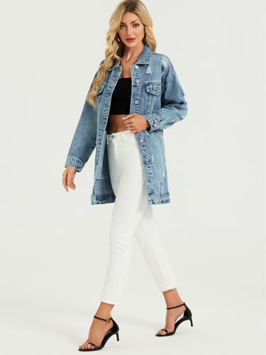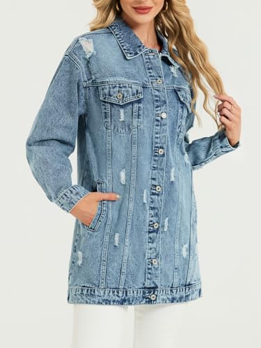 • Relaxed: Designed for effortless style, the oversized denim jacket women is featured in an longer length silhouette with ripped detailing for a modern feel. The extended hem provides extra coverage while the strategic distressing adds urban flair