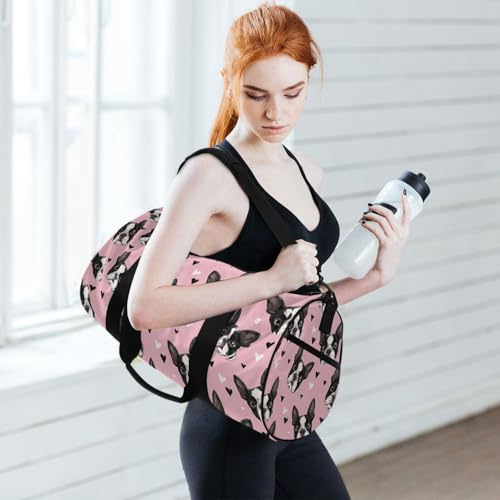 HOT ! Pink Bulldog Sports Duffel Bag Large Capacity Barrel Gym Bag with Full Print Polyester Fabric, Multiple Pockets and Detachable Strap for Sports Gym and Weekend Getaways