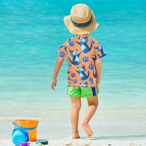 ALAZA Kids Rash Guard Boys Toddler Swim Shirts Short Sleeve Kitten Orange UPF 50+ 3T 4