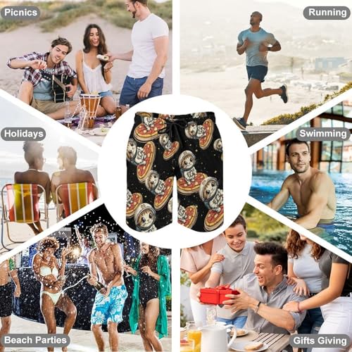 More information about Funny Cat Flying A Pizza Astronaut Men's Swim Trunks Quick Dry Board Shorts Hawaiian Beach Shorts With Pocket
