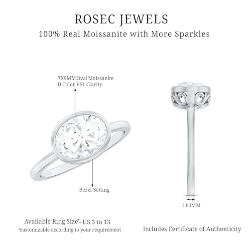 Certified Moissanite 7X9 mm Oval Engagement Ring, D-Vs1 Quality, Moissanite East West Ring (Ready to Gift) 1