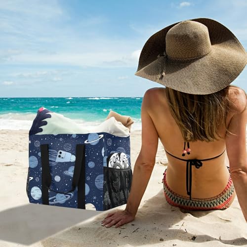 HOT ! Blue Planet Waterproof Tote Bag,Multi-Purpose Kitchen Reusable Grocery Bags, Travel, Beach & Laundry Organizer 15.4 X 9.8 X 12.8 inch