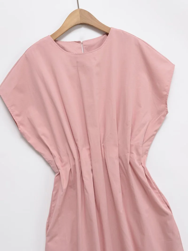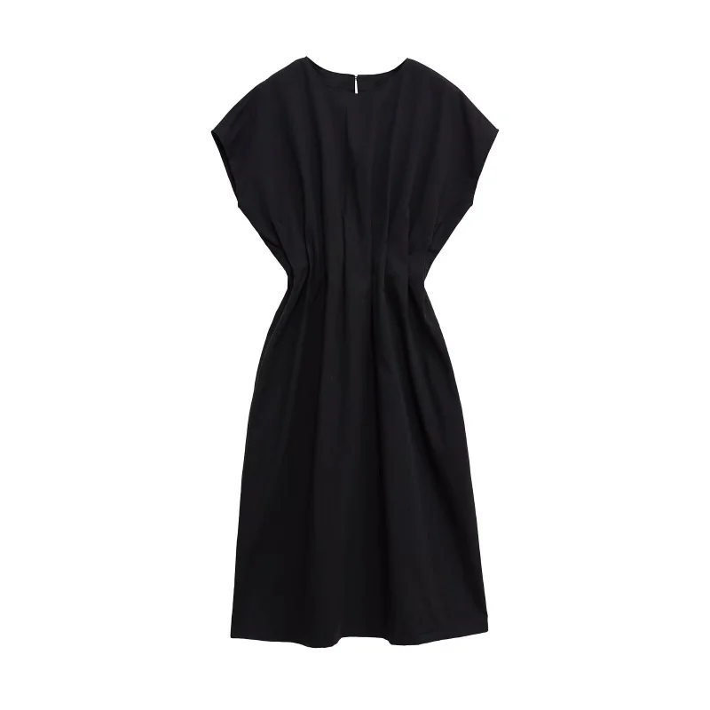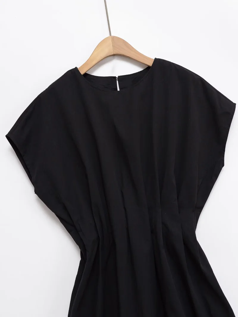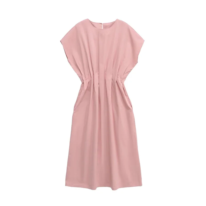 SPECIFICATIONSAge: Middle AgeBrand Name: ETJCN: JiangsuChoice: yesClosure Type: PulloverCraft of Weaving: TatDecoration: FoldsDresses Length: Mid-CalfElasticity: Non StrechFabric Type: POLYESTERFit Type: LooseGender: WomenHign-concerned Chemical: NoneMaterial: POLYESTERMaterial Composition: synthetic fiberNeckline: O-NeckOrigin: Mainland ChinaPattern Type: SolidPlace Of Origin: China (mainland)Profile Type: XRelease Date: Summer 2025Season: SummerSilhouette: PleatedSleeve Length(cm): Short(4 - 16 Inch)Sleeve Style: Cloak SleevesStyle: CasualType: RegularWaistline: Naturalsize_info: {sizeInfoList:[{length:{cm:114,inch:44.88},size:XS,vid:872},{length:{cm:118,inch:46.46},size:S,vid:100014064},{length:{cm:122,inch:48.03},size:M,vid:361386},{length:{cm:126,inch:49.61},size:L,vid:361385}]}