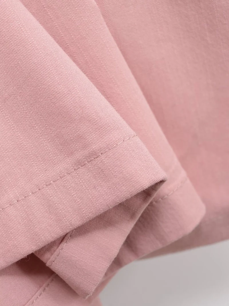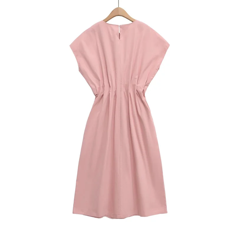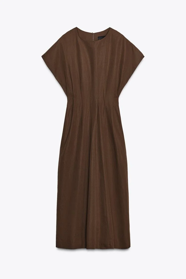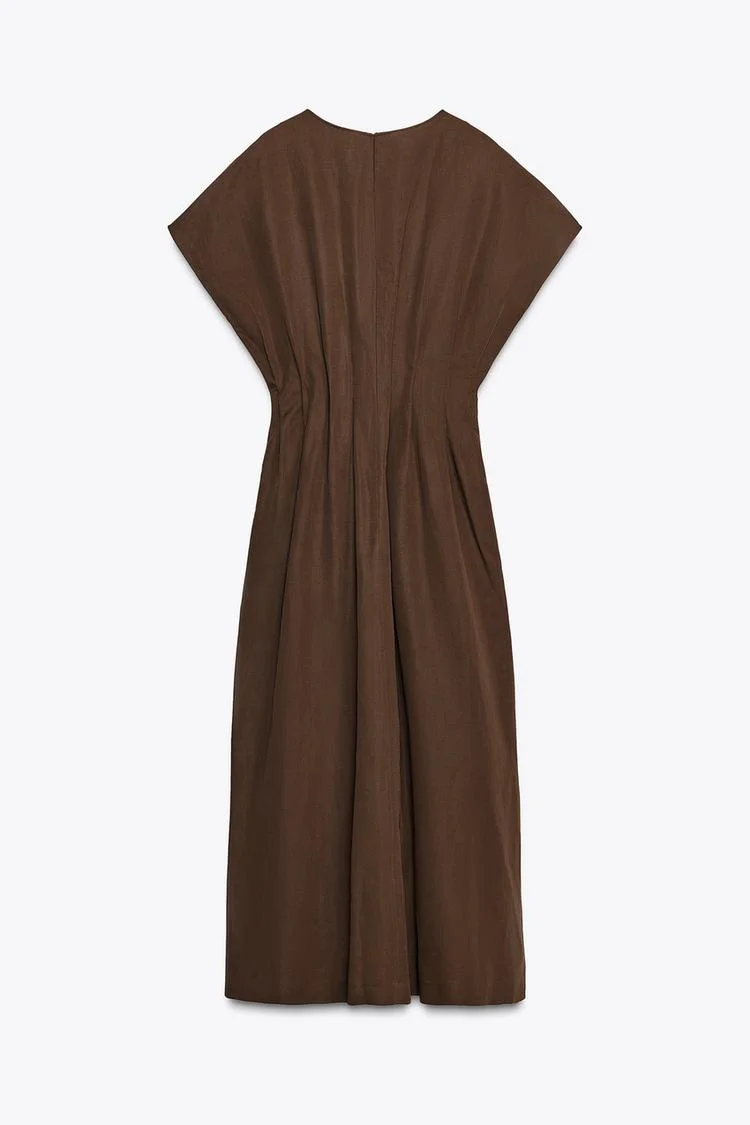 ETJ 2025 summer new TRAF women's ZW series fashion pleated design wide shoulder waist short-sleeved MIDI dress