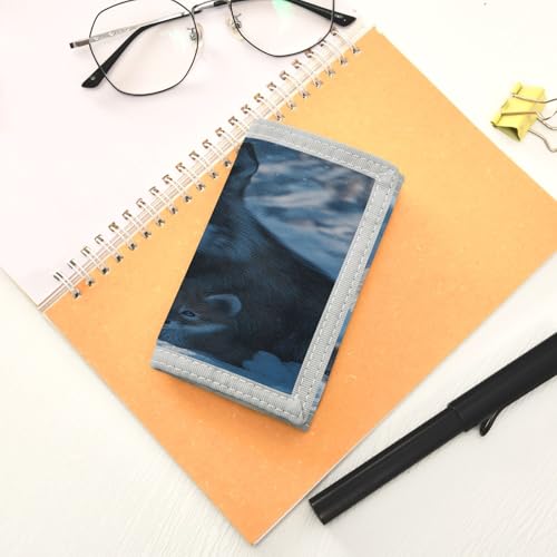 HOT ! Snow Wolf Cubs Blue Kids Wallet for Boys Girls Trifold Sport Outdoor Wallets for Children Teen Youth Wallet with Zippered Coin Pockets Card Holders Novelty Wallets with Magic Sticker