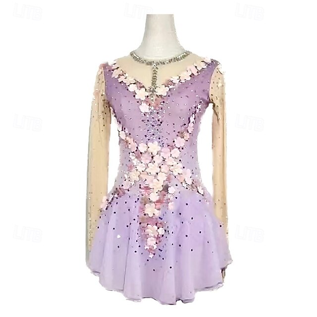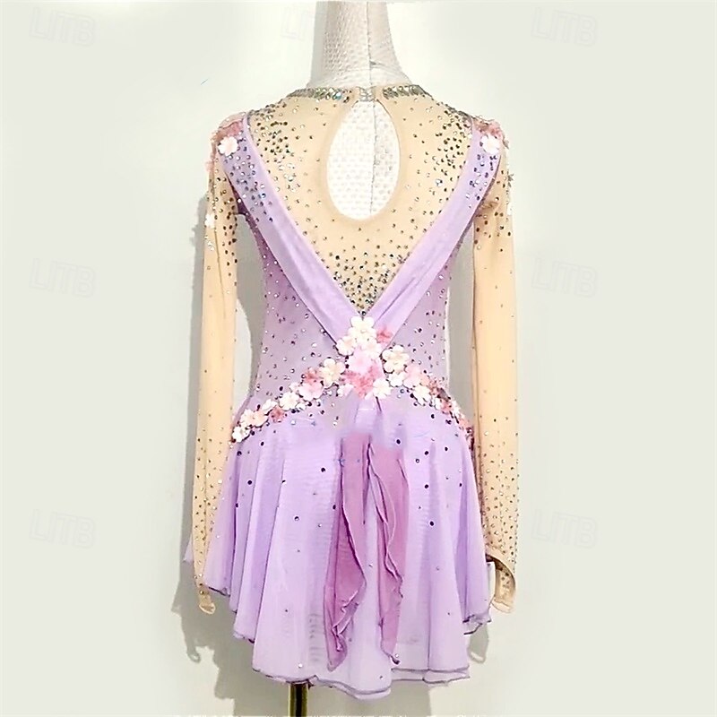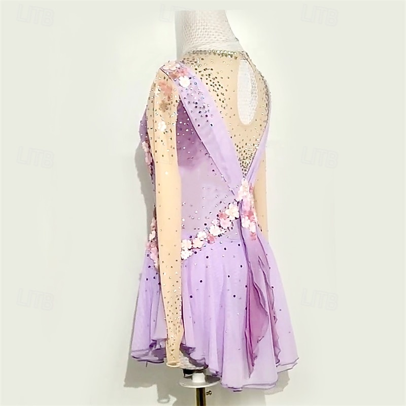 More information about Figure Skating Dress Women's Girls' Ice Skating Dress Light Purple Patchwork Mesh High Elasticity Training Competition Skating Wear Classic Crystal / Rhinestone Long Sleeve Ice Skating Figure Skating