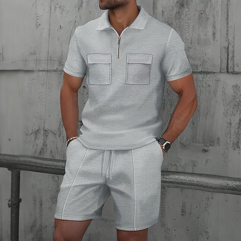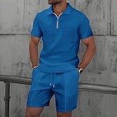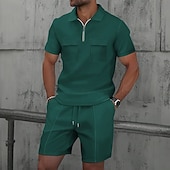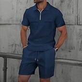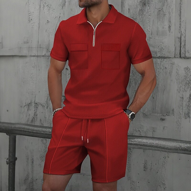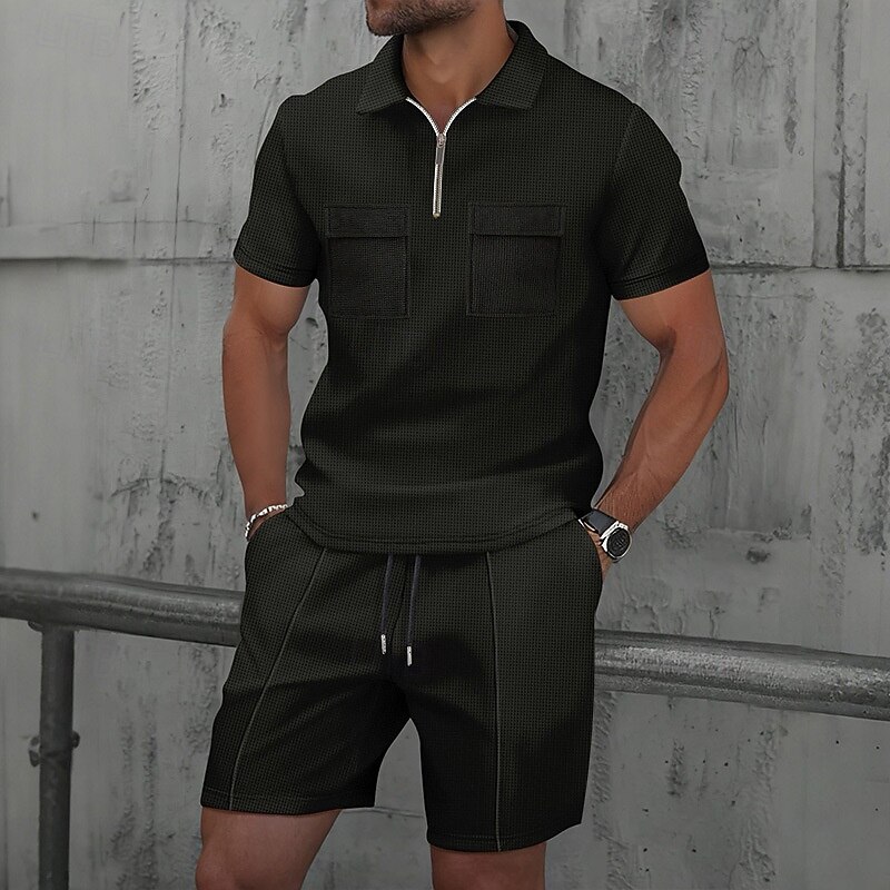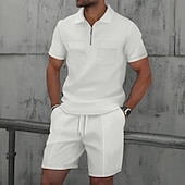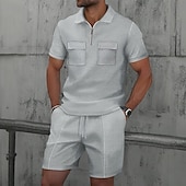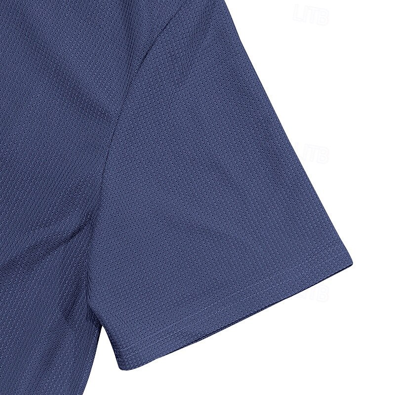 More information about Men's Waffle Polo Shirts Polo Shirts Daily Wear Beach Lapel Short Sleeve Fashion Hawaiian Plain 2 Piece Summer Spring Regular Fit Wine Depression Green Black White Navy Blue Blue Waffle Polo Shirts