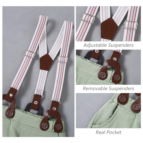 WESIDOM Baby Boy Clothes Suit 0-24M Infant Gentleman Wedding Outfit, Shirt+Bowtie+Beret+Suspender Pants Clothing Set 2