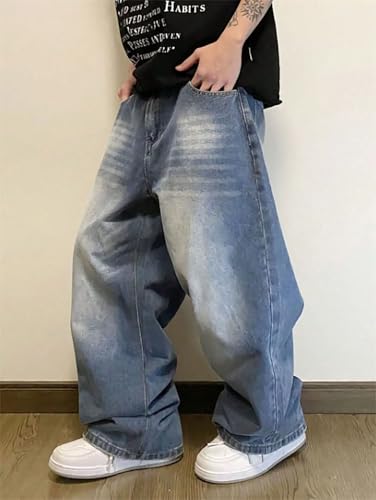 • Features Y2k trousers men's women's retro wide-leg jeans Patchwork pants Denim cut Precise and strong stitching Durable Simple classic style, wide-leg design suitable for any body type