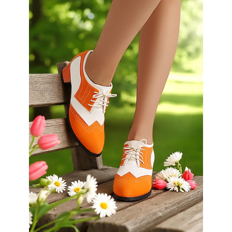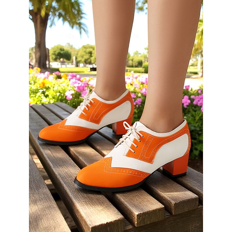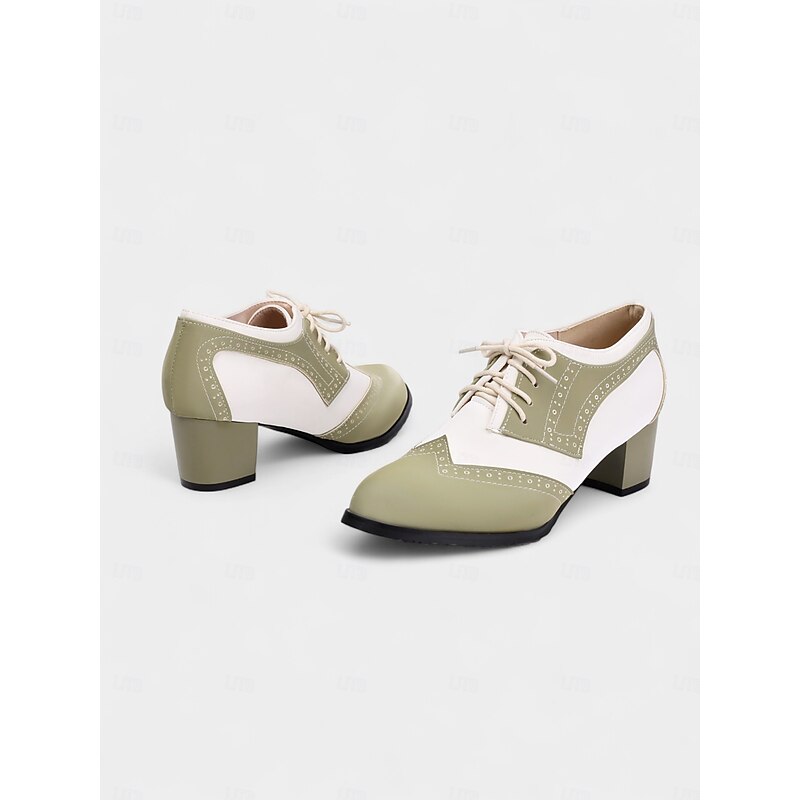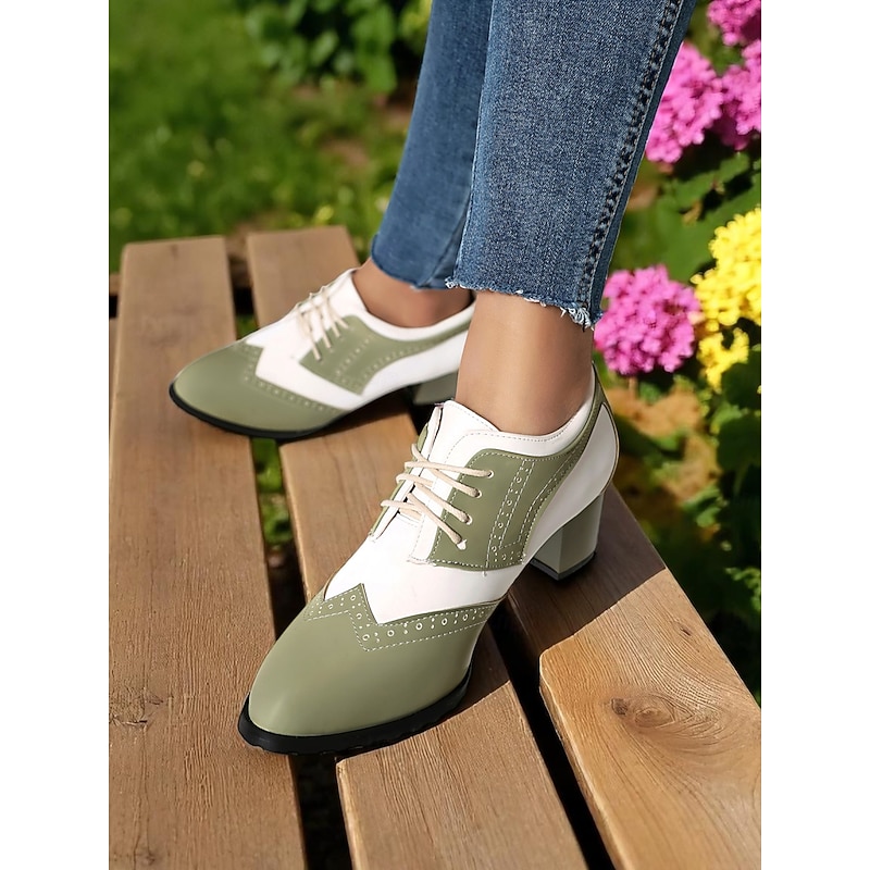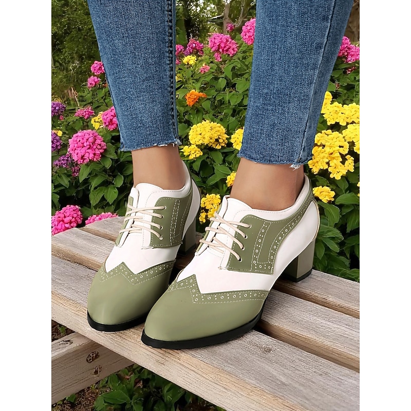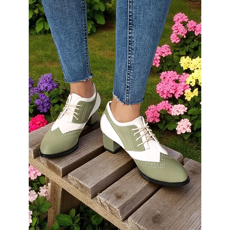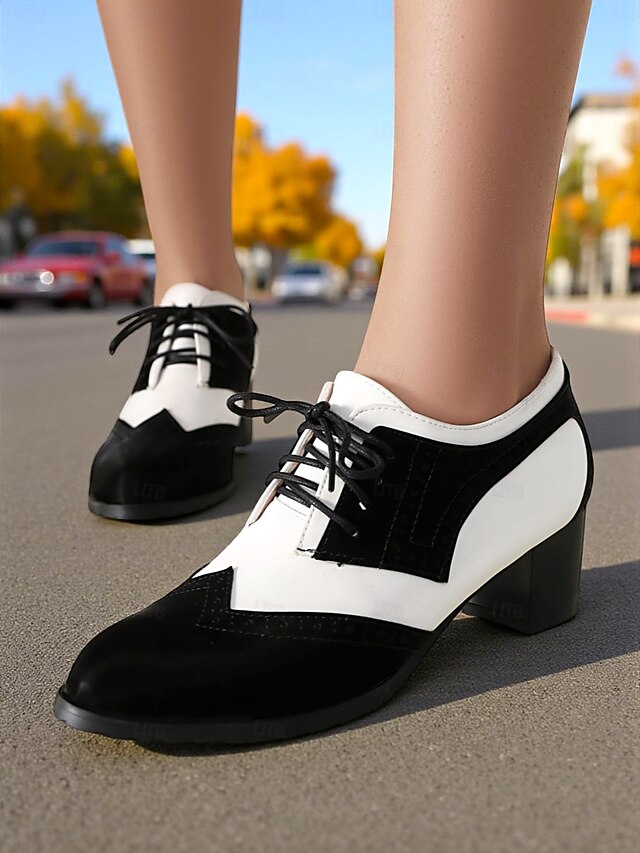 Women's Two-Tone Black and White Oxford Heels with Brogue Detailing – 1950s Vintage Lace-Up Dress Shoes for Daily Wear, Spring Outfits, and Retro-Inspired Looks 21