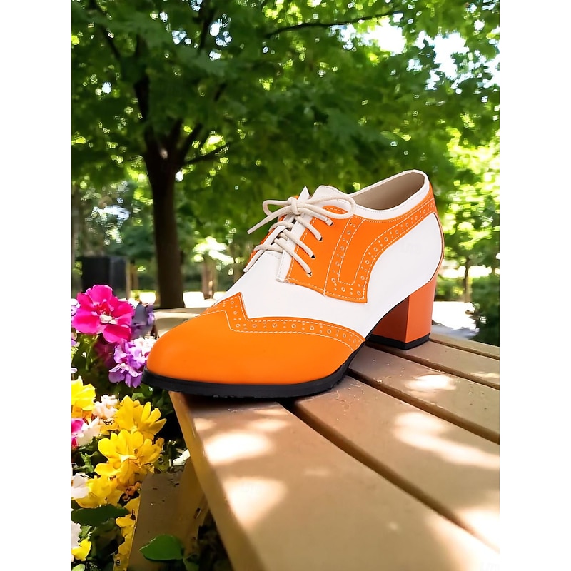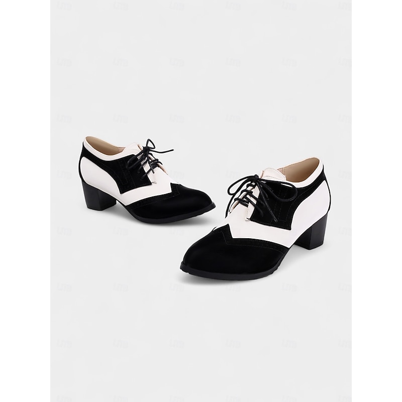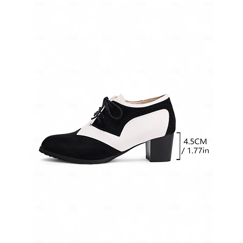 More information about Women's Two-Tone Black and White Oxford Heels with Brogue Detailing – 1950s Vintage Lace-Up Dress Shoes for Daily Wear, Spring Outfits, and Retro-Inspired Looks