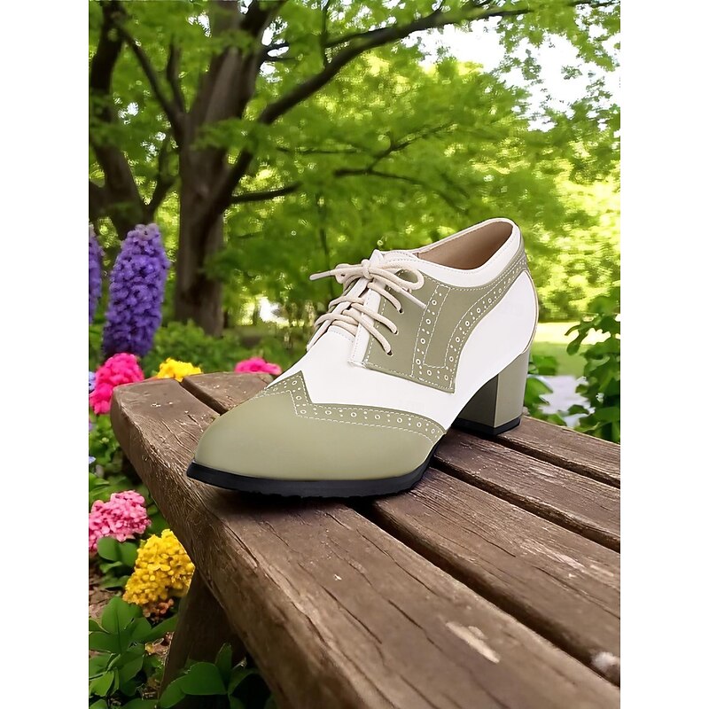 HOT ! Women's Two-Tone Black and White Oxford Heels with Brogue Detailing – 1950s Vintage Lace-Up Dress Shoes for Daily Wear, Spring Outfits, and Retro-Inspired Looks