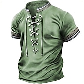 Men's T Shirt Graphic Tribal Stand Collar Clothing Apparel 3D Print Daily Sports Going out Short Sleeve Lace up Print Polyester Vintage Fashion Designer 9