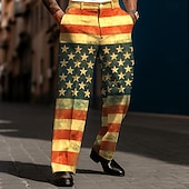 HOT ! Men's American US Flag Patriotic Trousers Dress Pants Suit Pants Mid Waist Vintage Retro Dailywear Holiday Streetwear Relaxed Fit Flat Front Dress Pants with Side Pockets Spring Fall 3D Print Blue