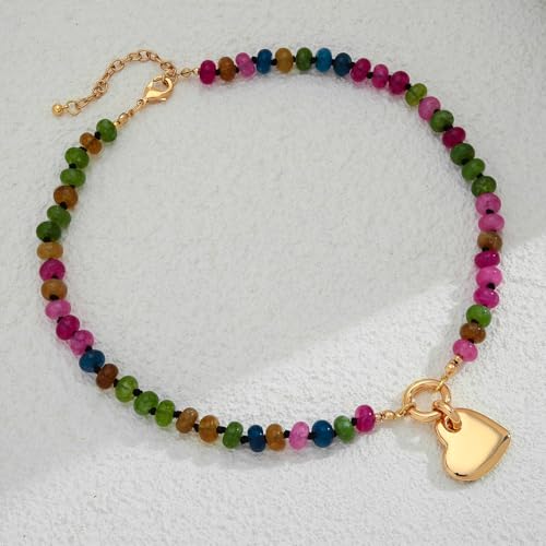 • Heart Design : This gold necklaces for women adopts a heart-shaped pendant design, with colorful beads embellished. The style is versatile and chic, fashionable and novel. Wearing this necklace will make your neck shine with unique color charm.