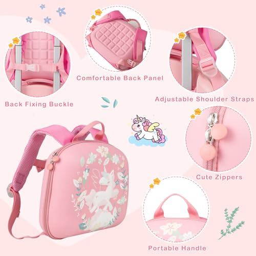 Goplus 4 Piece Kids Luggage Set, 14” Carry-on Hardside Spinner Luggage w/ 10” Backpack, Neck Pillow, Toddler Travel Rolling Suitcase for Boy Girl Children (Pink Horse) 5