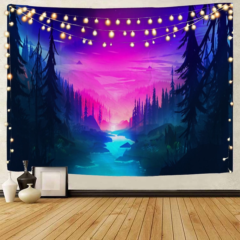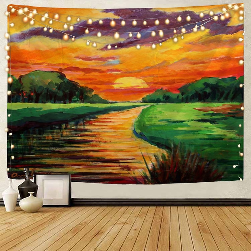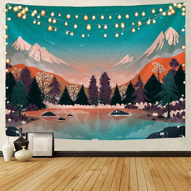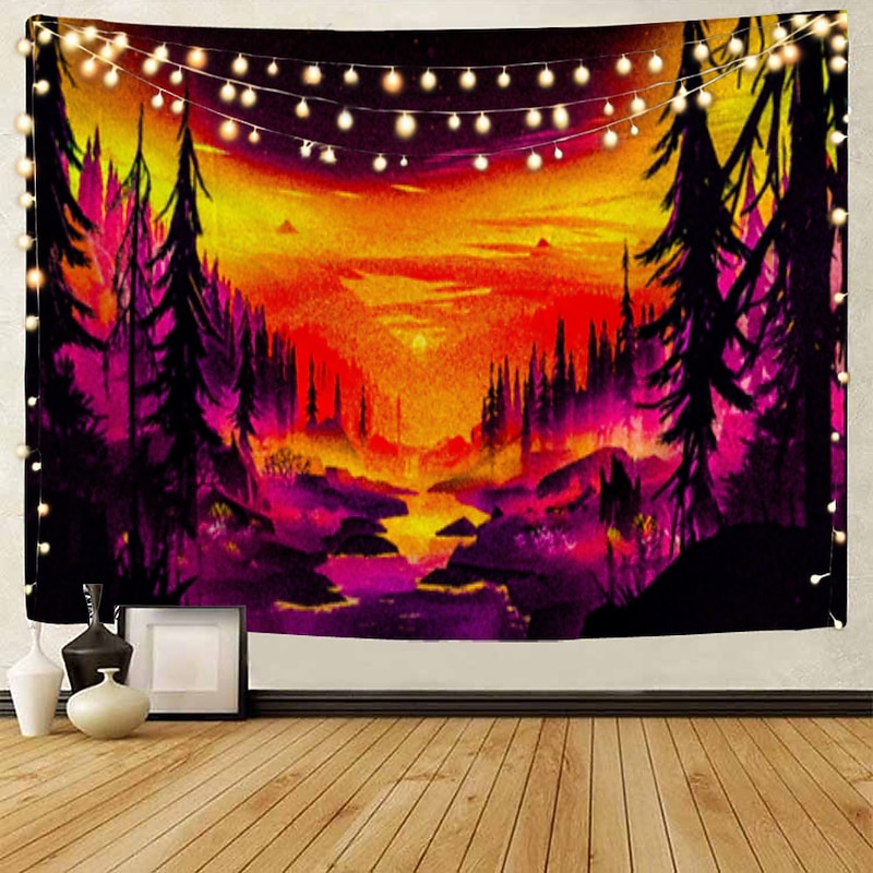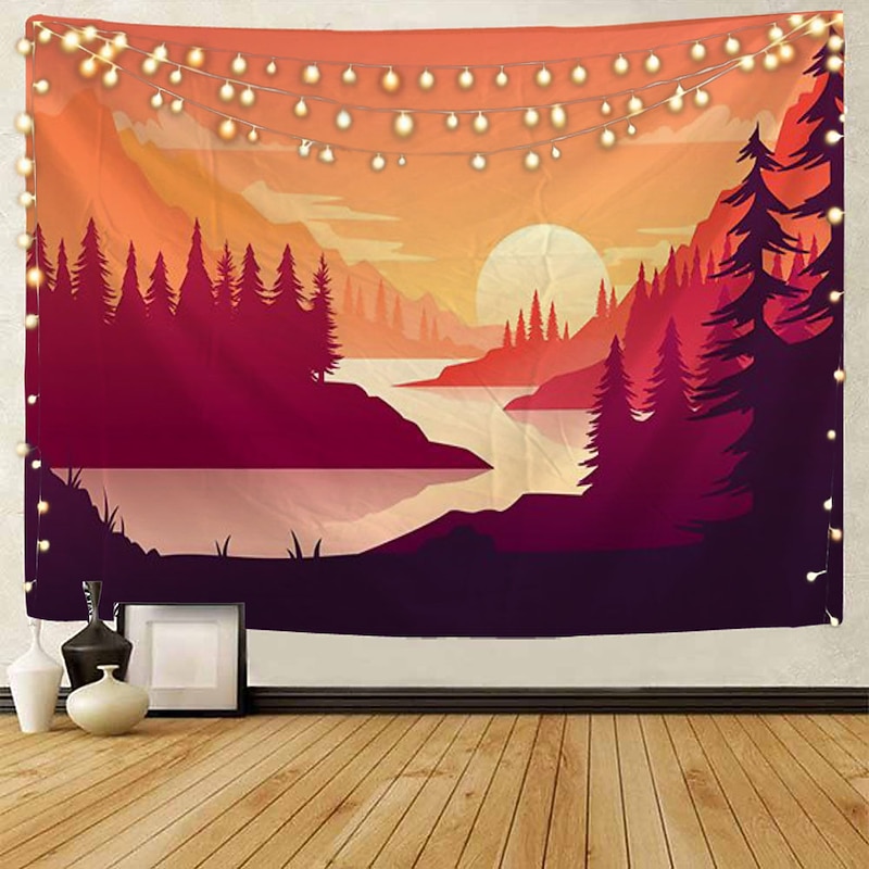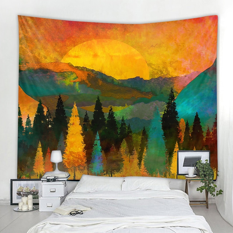 More information about Mountain Sunrise Wall Tapestry Art Decor Blanket Curtain Picnic Tablecloth Hanging Home Bedroom Living Room Dorm Decoration Landscape Golden Sunset Forest Ink
