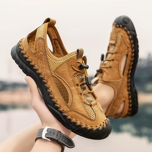 Large hand sewn sandals with men mesh breathable genuine leather versatile outdoor anti slip sports water wading sandals 1