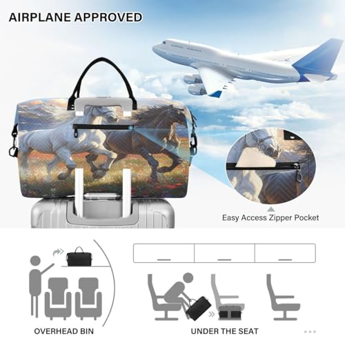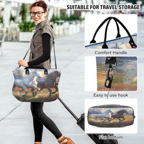 Horse Blossom Cityscape Mountan Travel Duffle Bag Gym Bag Weekender Bags with Toiletry Bag Travel Trip Tote Bag 7