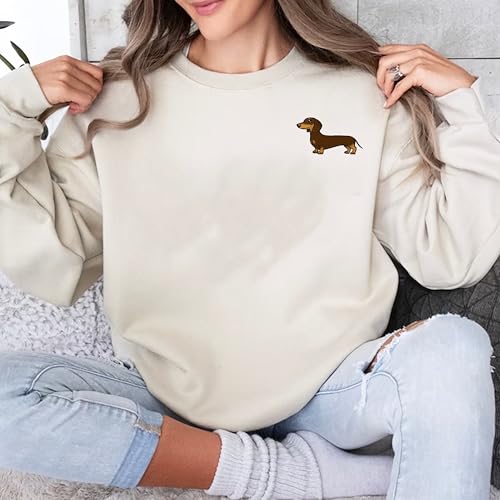 Customized Dachshund Crewneck, Custom Dog Pullover, Personalized Sausage Dog Sweatshirt, Unique Cream Pup Apparel, for Pet Lovers 6