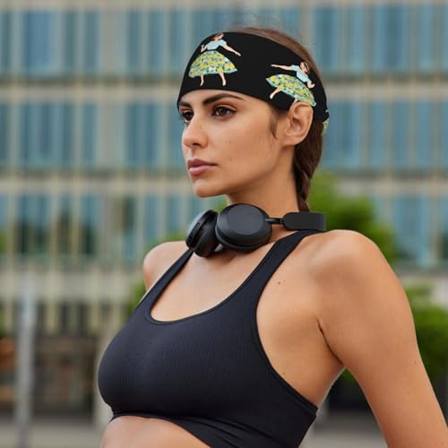 Elastic Sports Headband Hairband BROLEO Little girl dancing in a pear floral skirt Printing Quick Drying, Moisture Wicking 7