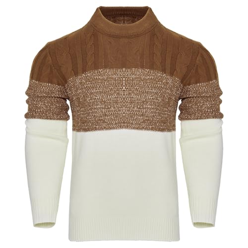 • ACM- Men's Casual Color Block Long Sleeve Cable Knit Pullover Sweater