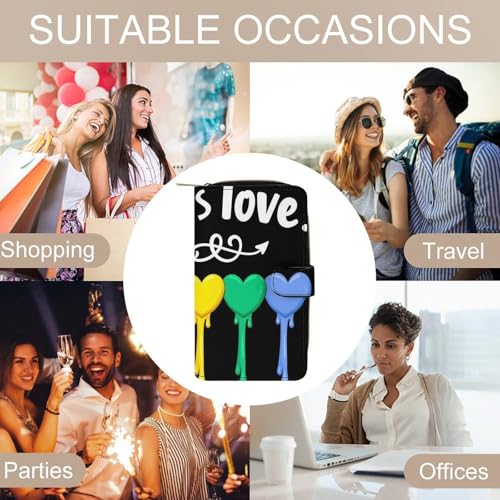 More information about PU Leather Wallet with 12 Card Slots, Women Men Portable Wallets Multi-Functional Purse for Work, Travel, LGBT Pride Rainbow Heart Love Is Love Elegant Large Capacity Wallet