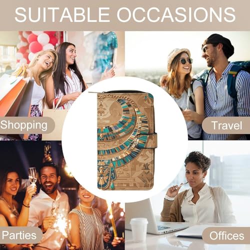 PU Leather Wallet Egyptian Necklace Print Travel Purse Women's Long Bifold Wallet Ladies Card Holder Purse with Zipper & Snap Closure 6