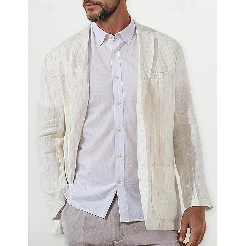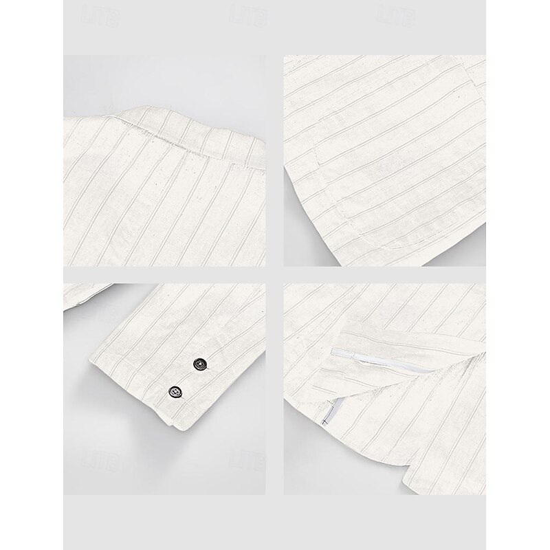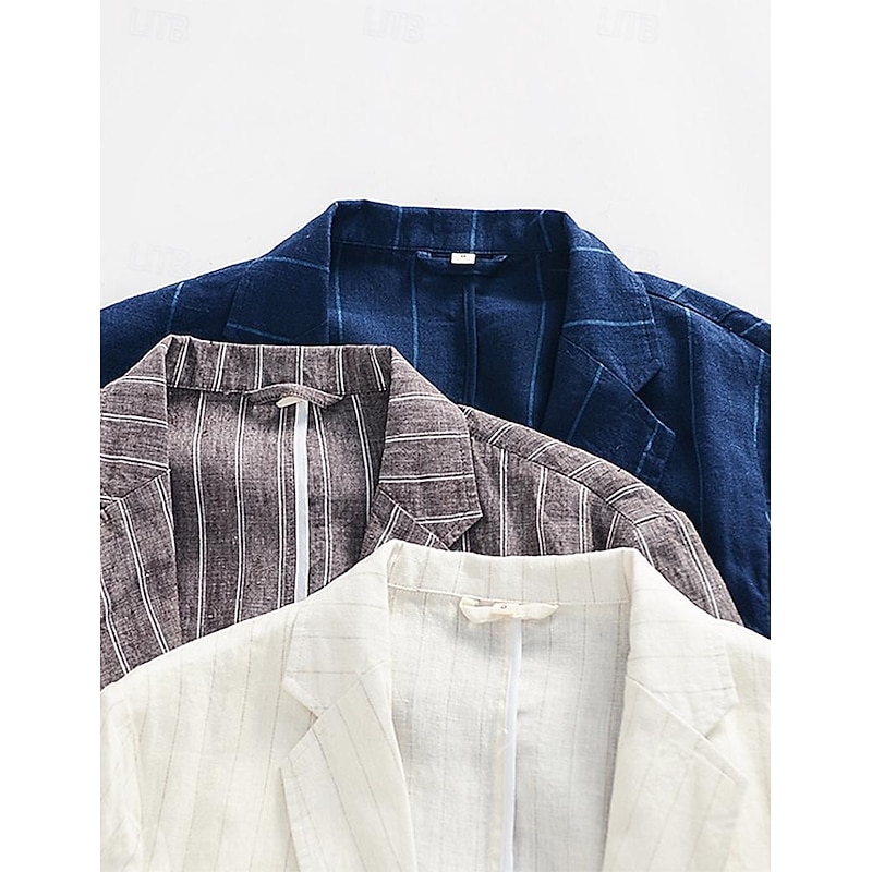 More information about 100% Linen Men's Linen Blazer Blazer Business Formal Evening Wedding Party Fashion Casual Spring & Fall Stripes Pocket Casual / Daily Single Breasted Blazer White Navy Blue Coffee