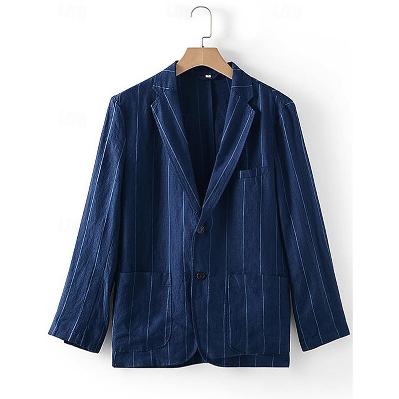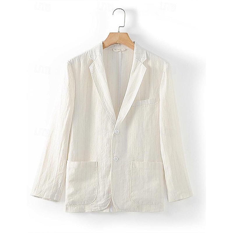 HOT ! 100% Linen Men's Linen Blazer Blazer Business Formal Evening Wedding Party Fashion Casual Spring & Fall Stripes Pocket Casual / Daily Single Breasted Blazer White Navy Blue Coffee