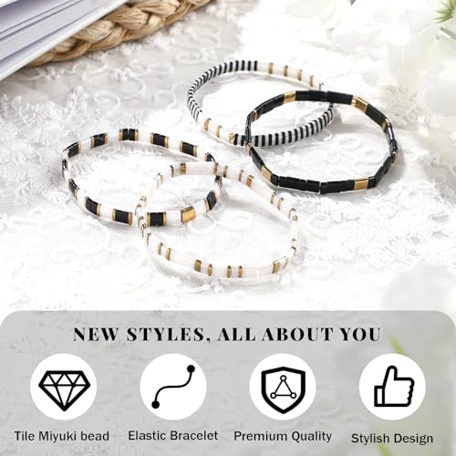 • Simple Design: the flat beaded stretch bracelets for women come in a black and white that enhances their charm; Whether you want to express your vibrant personality or add a color to a neutral outfit, these gorgeous bracelets have you covered