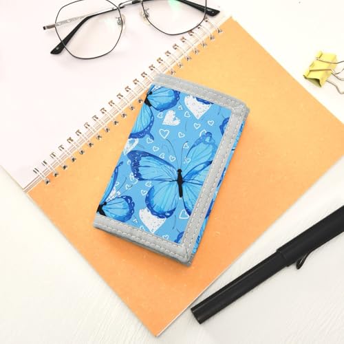 HOT ! Blue Butterflies Blue Kids Wallet for Boys Girls Trifold Sport Outdoor Wallets for Teen Children Youth Wallet with Zippered Coin Pockets Card Holders Front Pocket Wallets with Magic Sticker