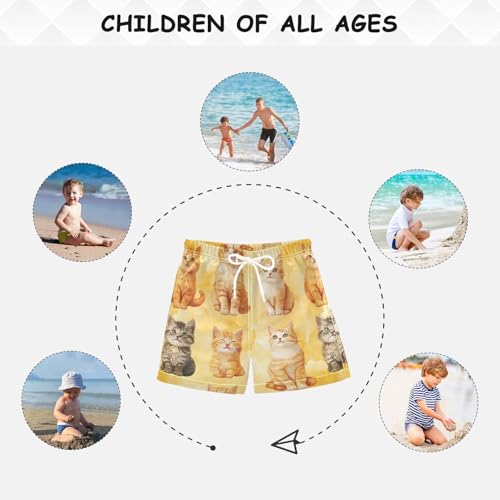 Pigsaly Boys' Swim Board Shorts Watercolor Yellow Cute Cat Boy's Swim Trunks Kids Swimwear 4T 6